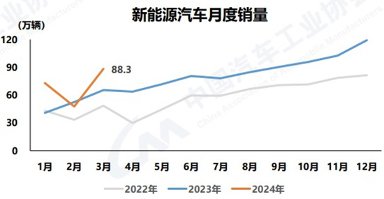 3月,新能源汽車產(chǎn)銷分別完成86.3萬輛和88.3萬輛,同比分別增長(zhǎng)28.1%和35.3%;一季度,分別完成211.5萬輛和209萬輛,同比分別增長(zhǎng)28.2%和31.8%,市場(chǎng)占有率達(dá)到31.1%。