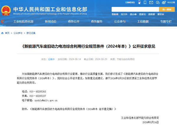 另外,企業(yè)還應(yīng)核實廢舊動力電池來源,確保用于梯次利用的廢舊動力電池來自新能源汽車退役動力電池。本次意見征集截止日期為2024年8月29日。
