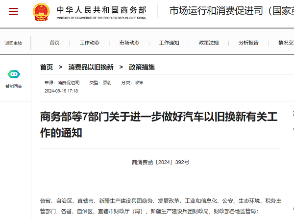 根據(jù)《若干措施》要求,國家發(fā)展改革委安排超長期特別國債資金用于支持地方提升消費品以舊換新能力,推動汽車報廢更新和個人消費者乘用車置換更新。